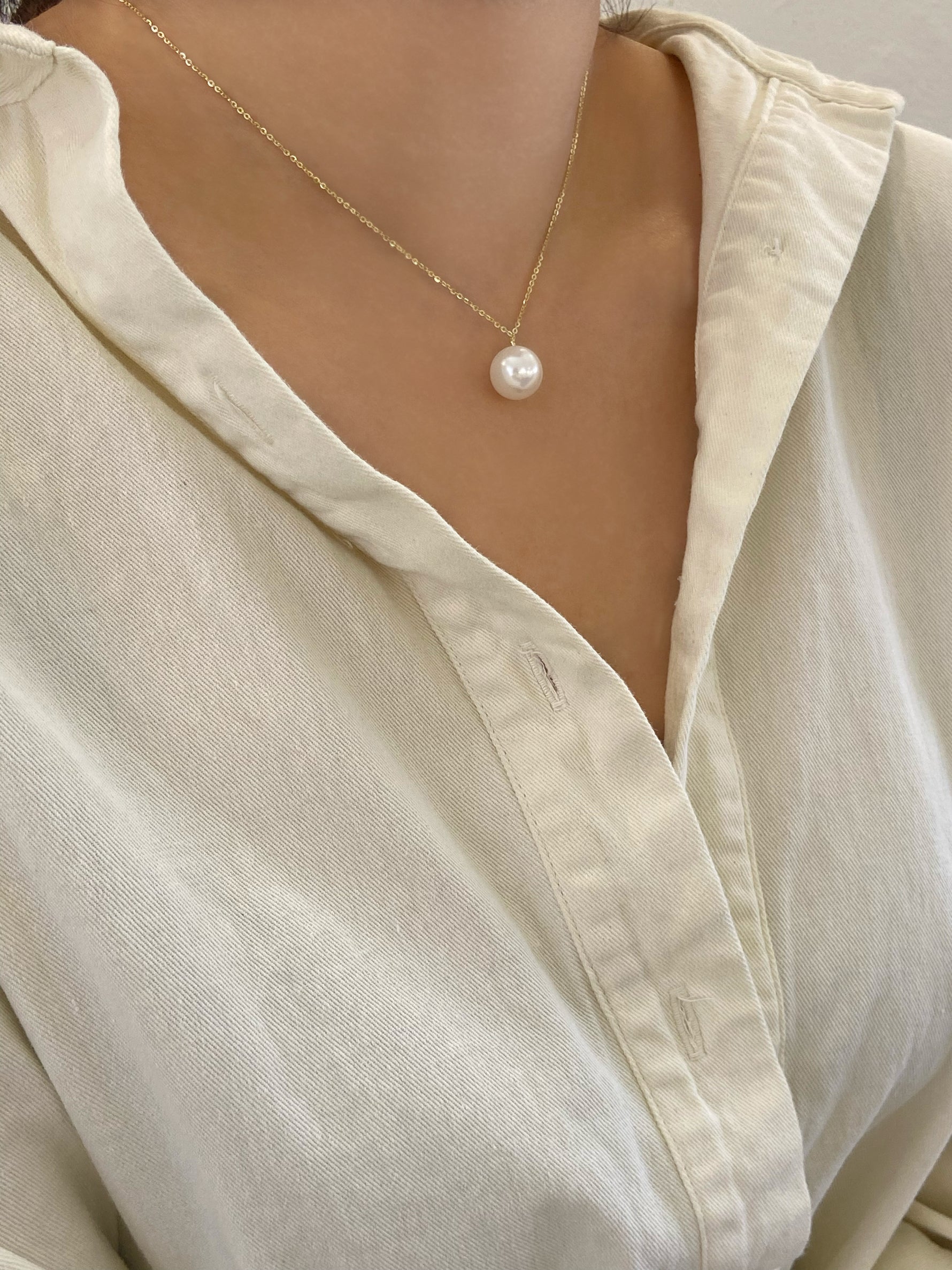 一条精致项链,吊坠为一颗直径约 12mm 的光泽温润大珍珠。