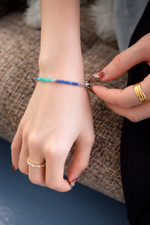 Soft milky tones with gentle blue accents, like a kiss from the sky. Light on the wrist and easy to wear, this piece carries a quiet sweetness — light, calm, and effortlessly soothing.